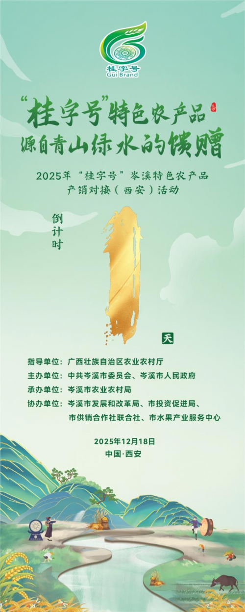 12月16日,本网获悉,距离2025年 “桂字号” 岑溪特色农产品产销对接(西安)活动仅剩1天。这场聚焦广西优质农特产的盛会,将于12月18日在陕西西安启幕。